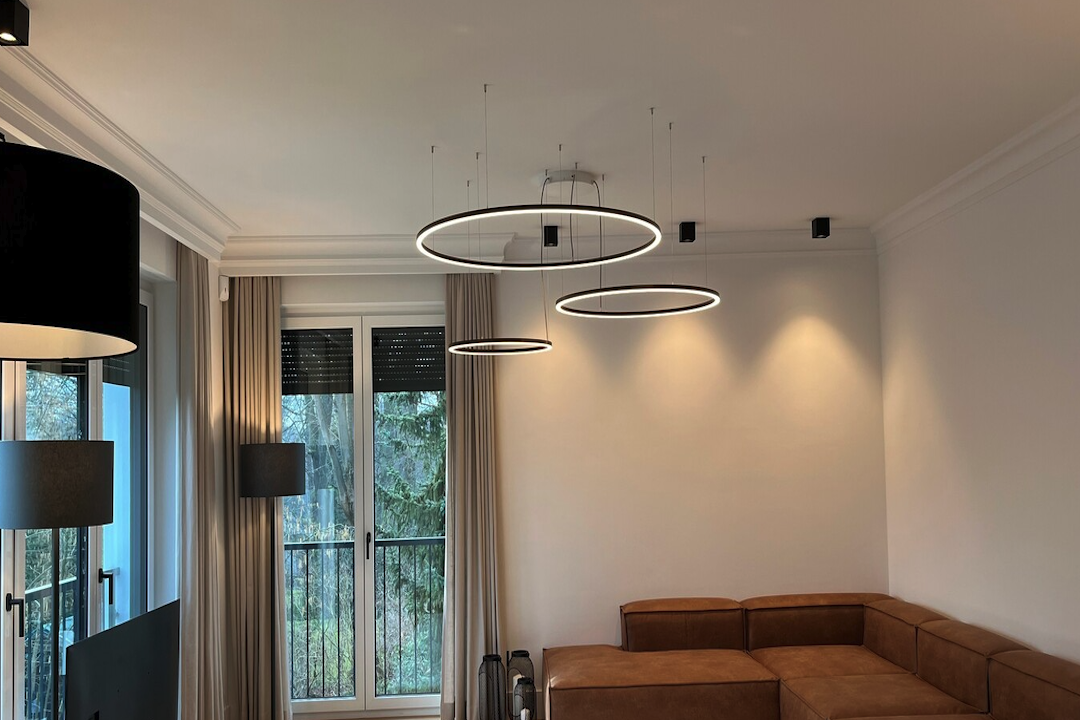 While often thought of for more task-oriented spaces, ring pendants can also add a touch of modern elegance to living areas.